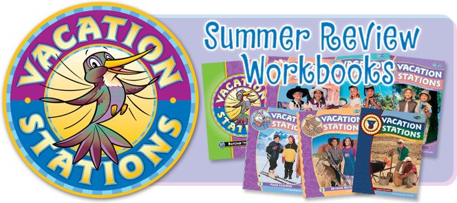 That’s where Vacation Stations comes in. Rising 1st-7th grade students can sharpen their academic skills and prepare for the next grade by doing just two pages a day of math, language, and reading reviews. And parents have a fun way to help their children do meaningful, grade-appropriate practice.