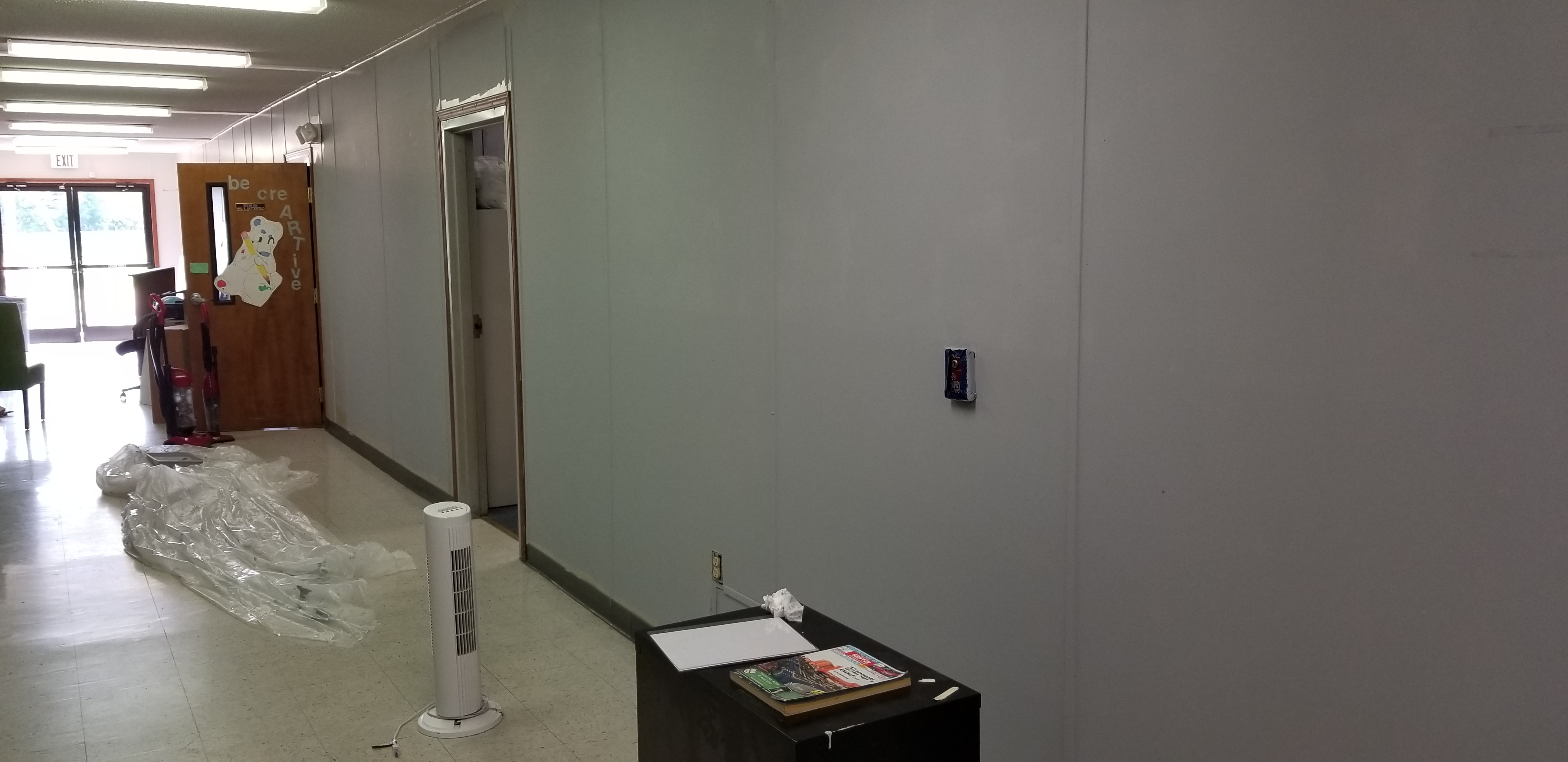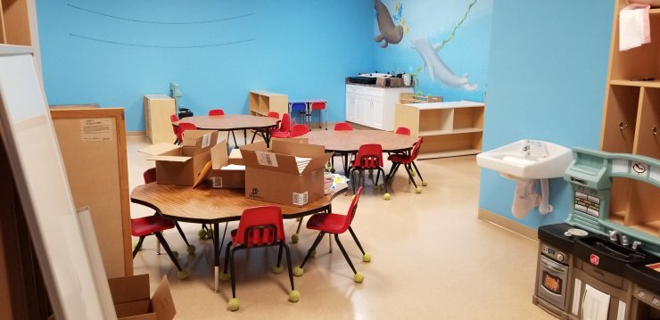 The multi-purpose room in the daycare building has been split into two rooms to accommodate an additional K4 class. Next year, we will be serving 54 preschool students.