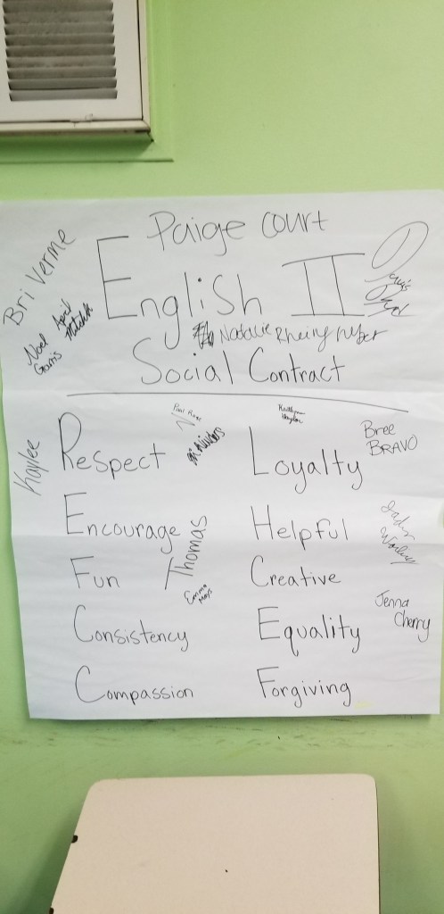 We call these agreements Social Contracts, and we’ve been working on them in our classrooms over the past week. It is a process we are using to develop a basis for how we are going to treat each other. We are using the process from Preschool all the way through High School.