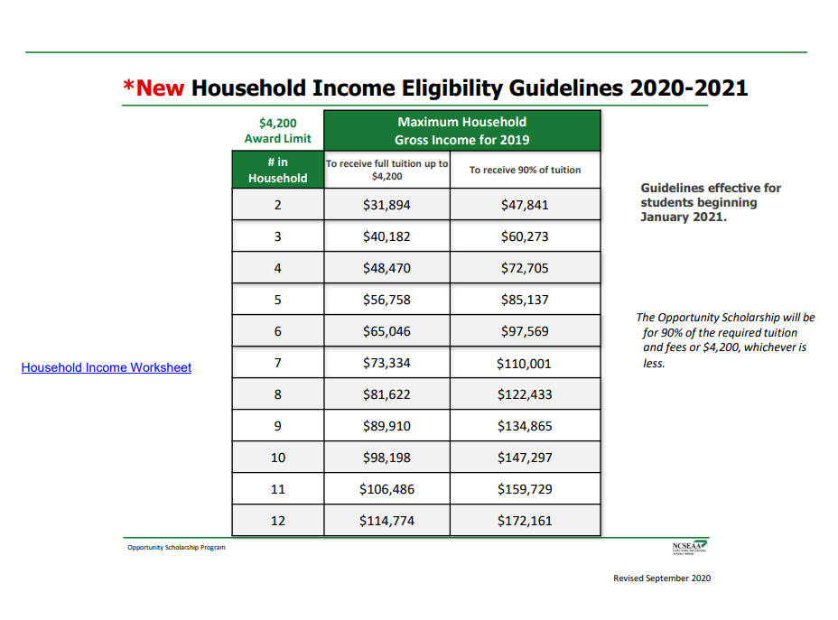 The NC Opportunity Scholarship has made some changes to eligibility levels that some of our families might benefit from. Please see the information below from the North Carolina State Education Assistance Authority (NCSEAA) concerning these changes.