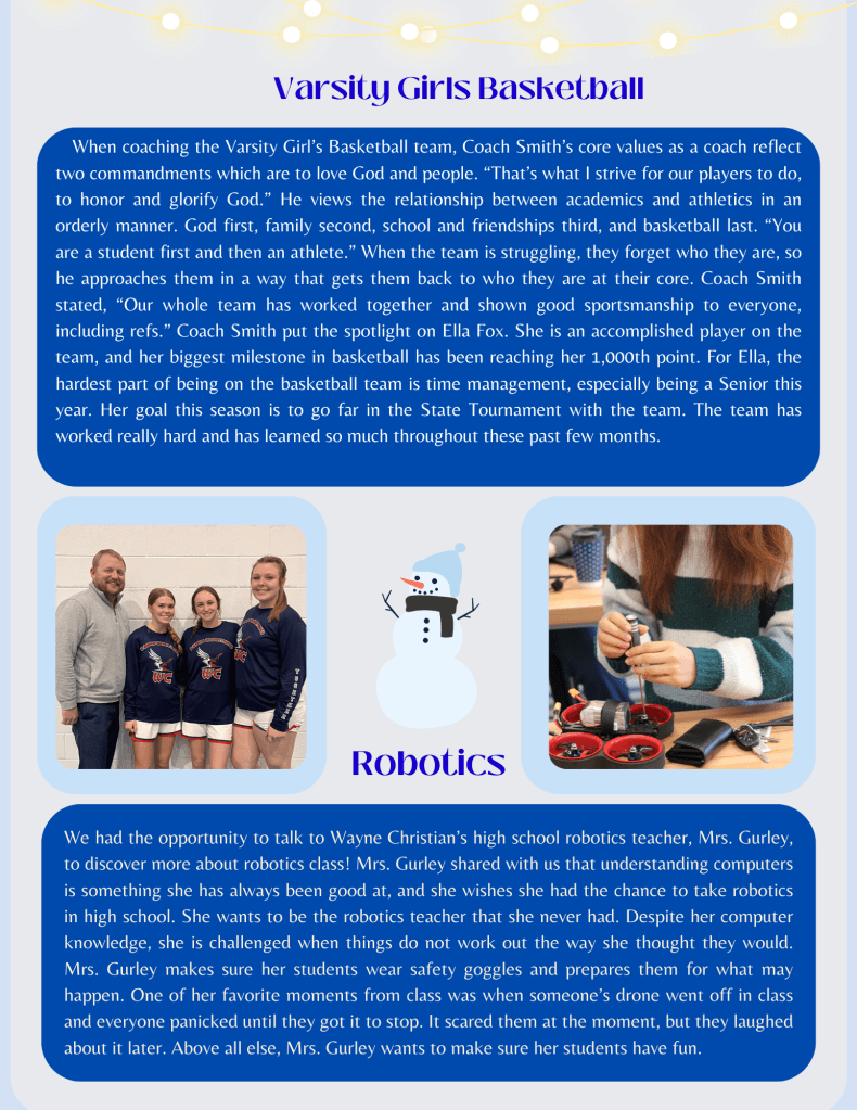 January Newsletter by the HS Journalism Class Posted byWCSTalonTimesJanuary 31, 2024Posted inUncategorized Share this: Click to share on Facebook (Opens in new window) Facebook Click to share on Pinterest (Opens in new window) Pinterest Click to share on X (Opens in new window) X Click to print (Opens in new window) Print Click to email a link to a friend (Opens in new window) Email Like Loading... Related